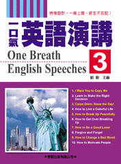 傳統的英語教學,沒有人真正把英文學好,學英文事實上只是一項技術,就像學騎腳踏車、學游泳一樣,演講是說話的最高境界,你可以從一口氣英語演講中,選出喜歡的演講稿,一篇接一篇地背下去,如果能用英文連續講30分鐘,就等於背了540個句子,每一篇背到一分鐘內,變成直覺,就終生不忘。每天自言自語說正確的英文,說多了,比美國人還好,苦練出來的語言最美。|||||