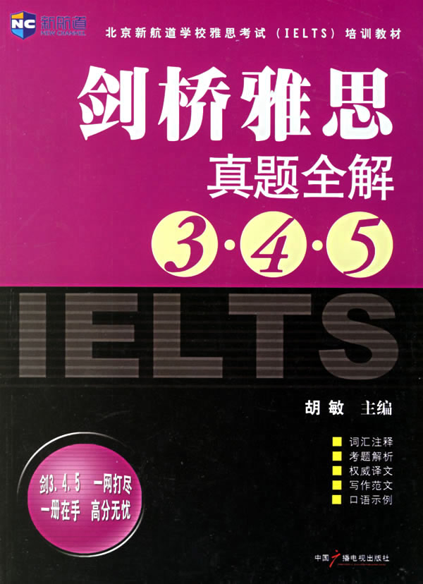 北京新航道学校雅思考试(IELTS)培训教材:剑桥雅思真题全解3、4、5,一网打尽,一册在手,高分无忧。词汇注释,考题解析,权威译文,写作范文,口语示例